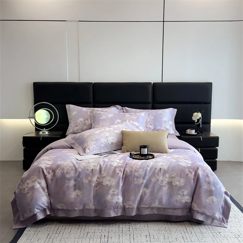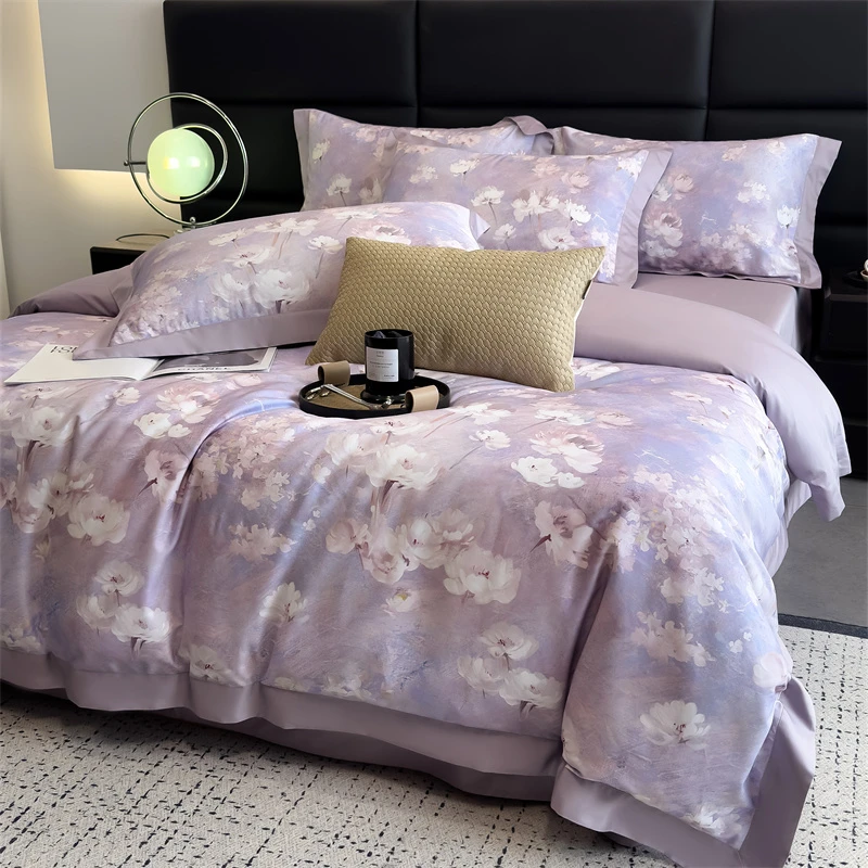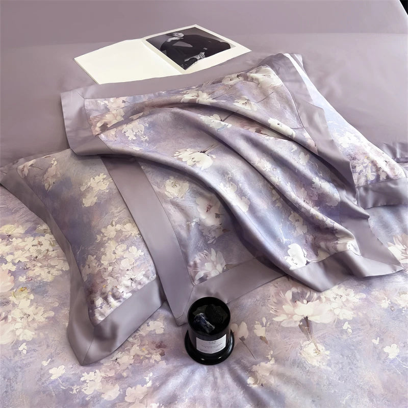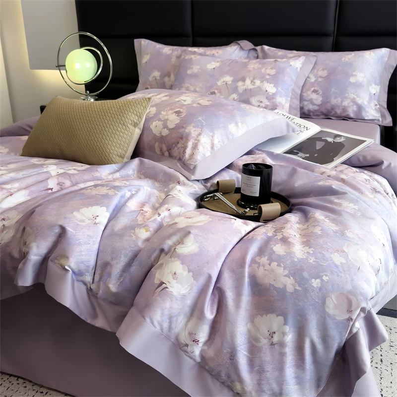 This soft purple bedding set brings an effortless touch of understated luxury to your bedroom's décor thanks to the stunning floral printed pattern.