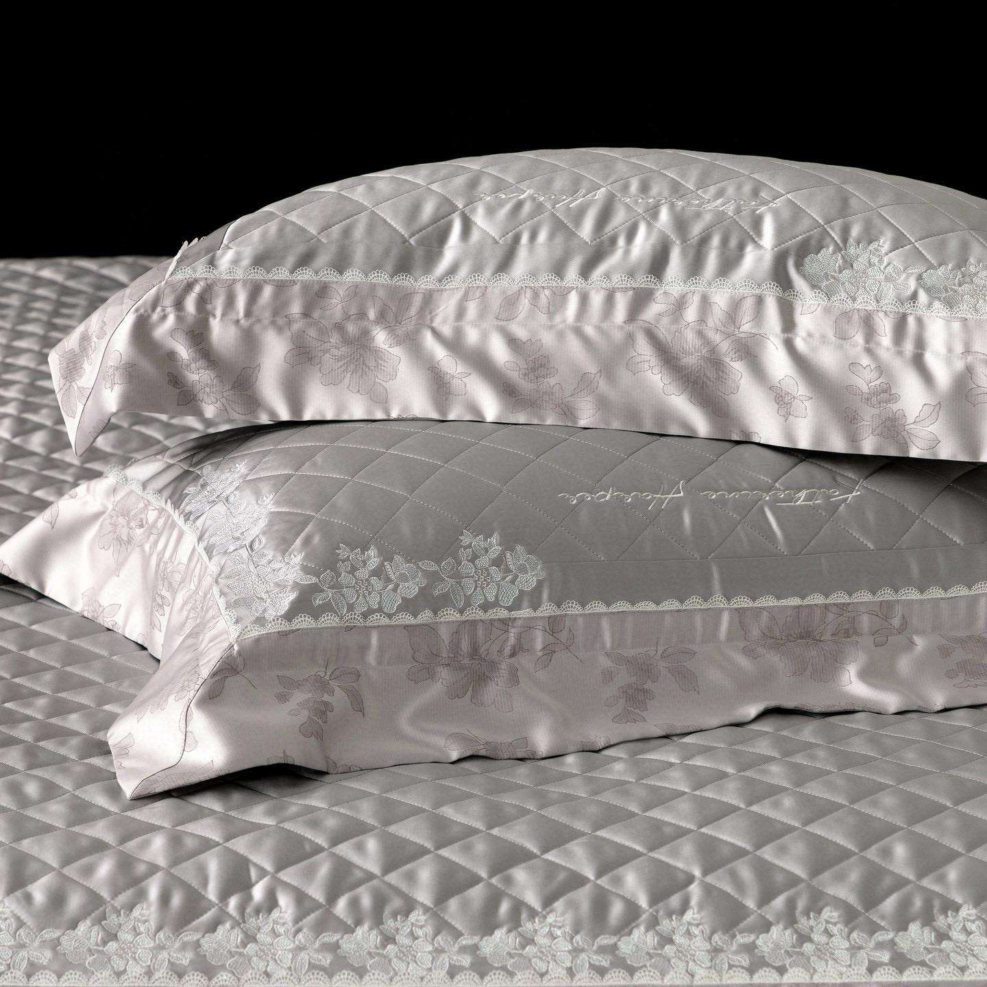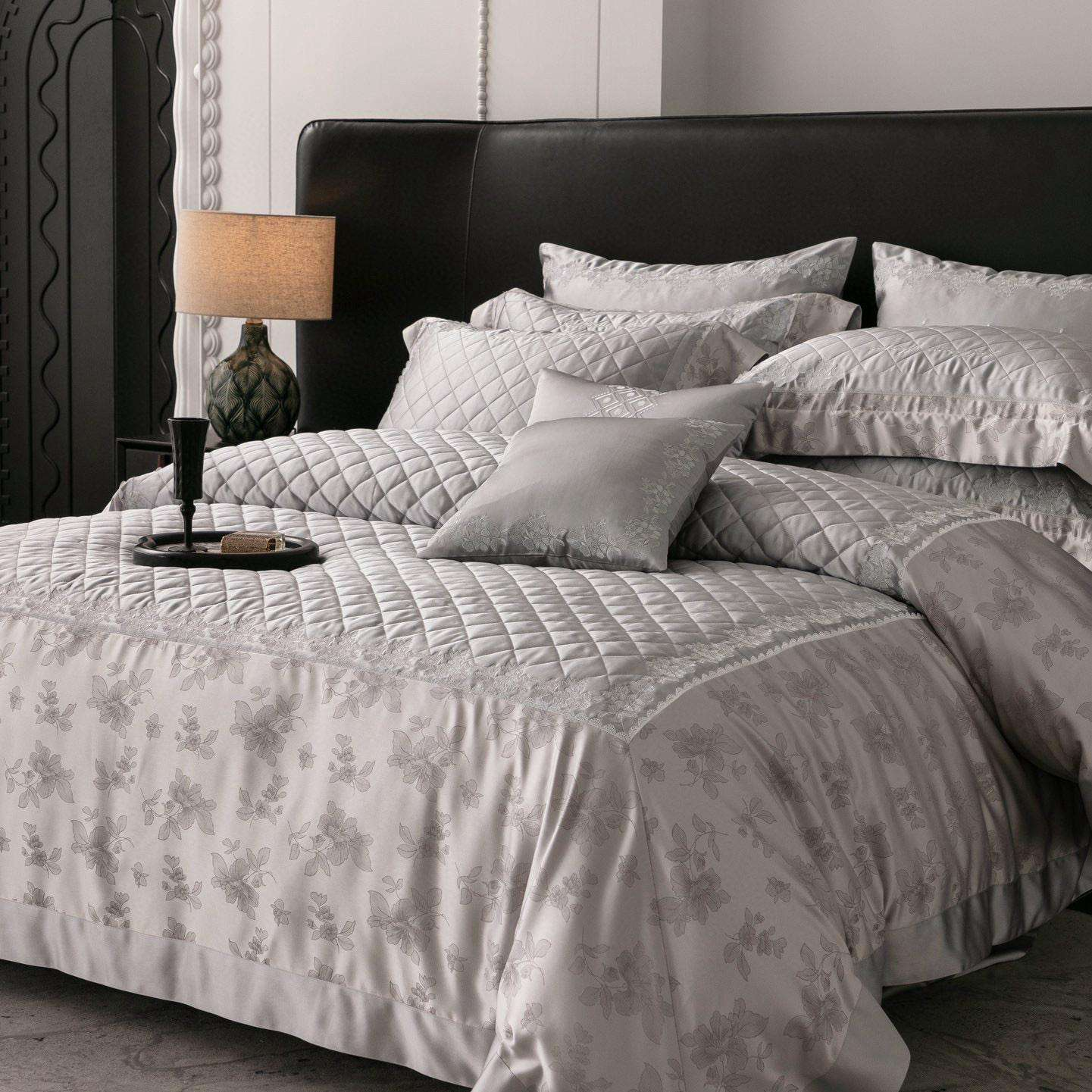 Immerse your bedroom in understated luxury with the Milena Grey Bedding Set by Luxurier, crafted from exceptionally fine Egyptian cotton and finished with elegant quilted detailing and a delicate floral jacquard pattern.