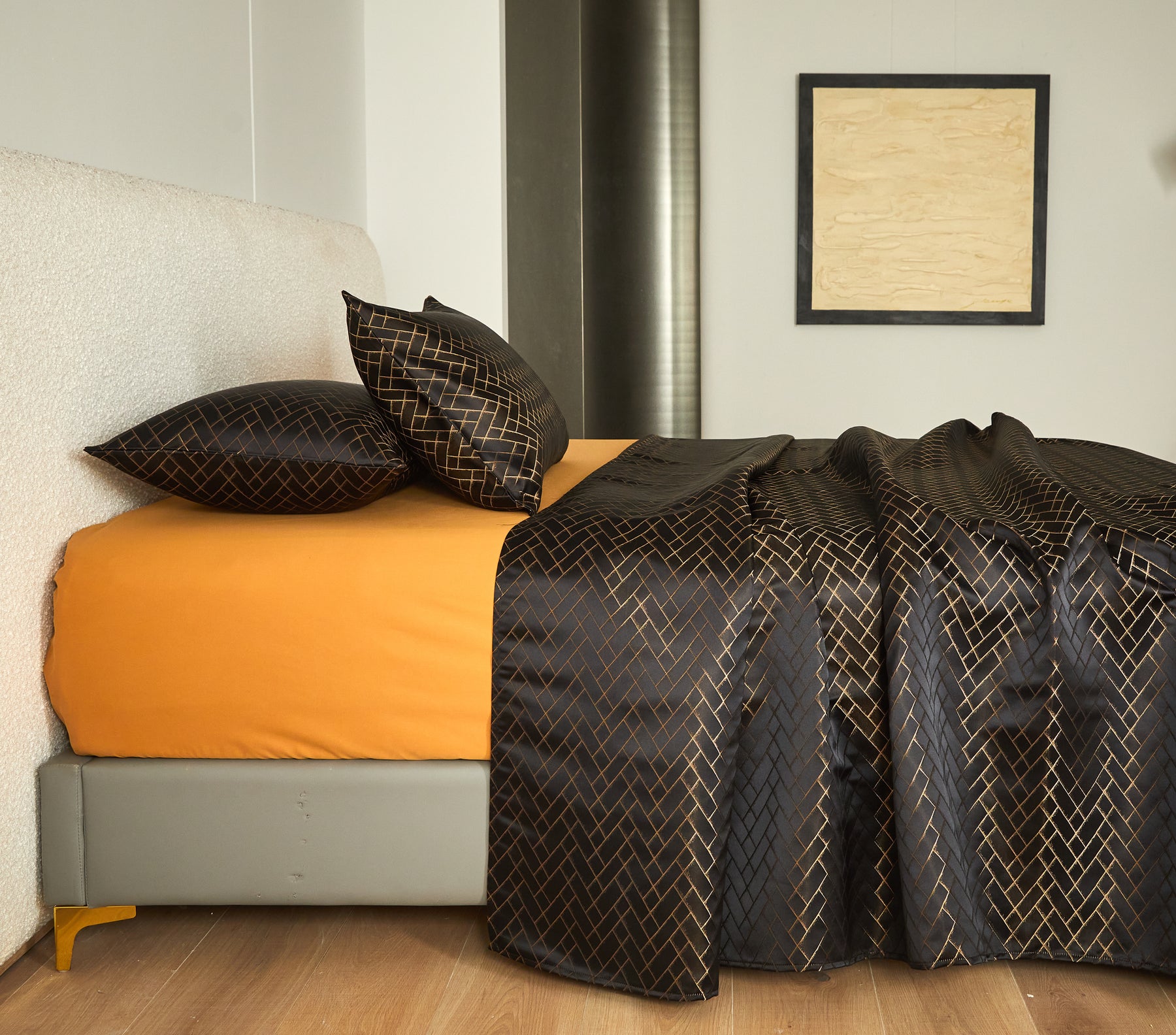 This set in Black and Orange is made with 100% Egyptian Cotton with a premium 1000-Thread-Count, it is the ultimate choice to beautify your bed while taking your dreams to the next level.