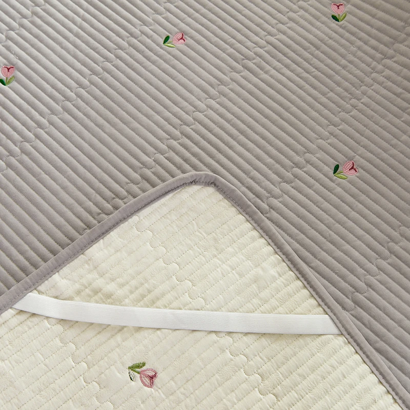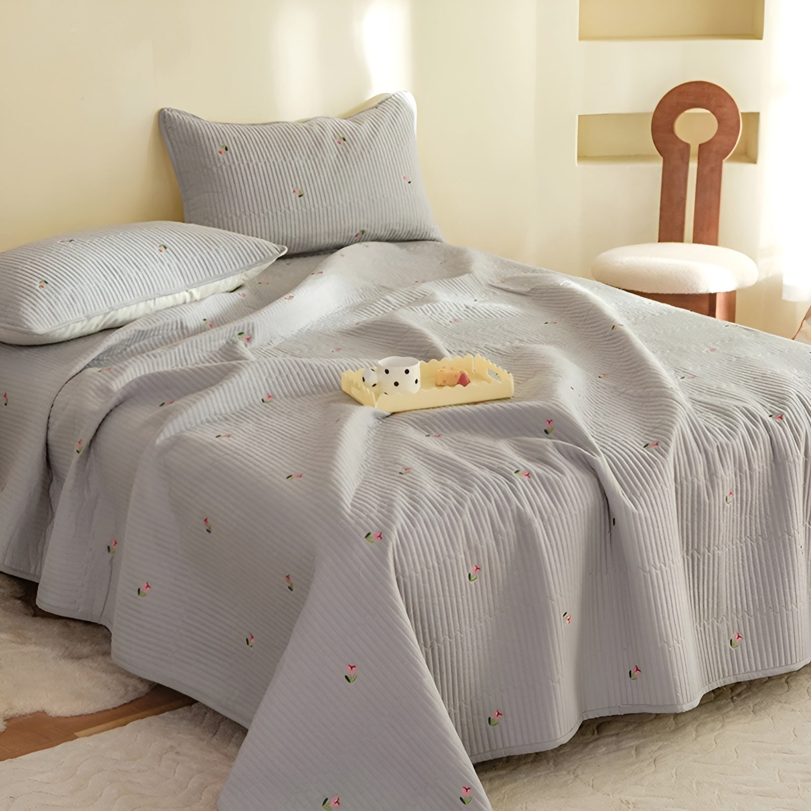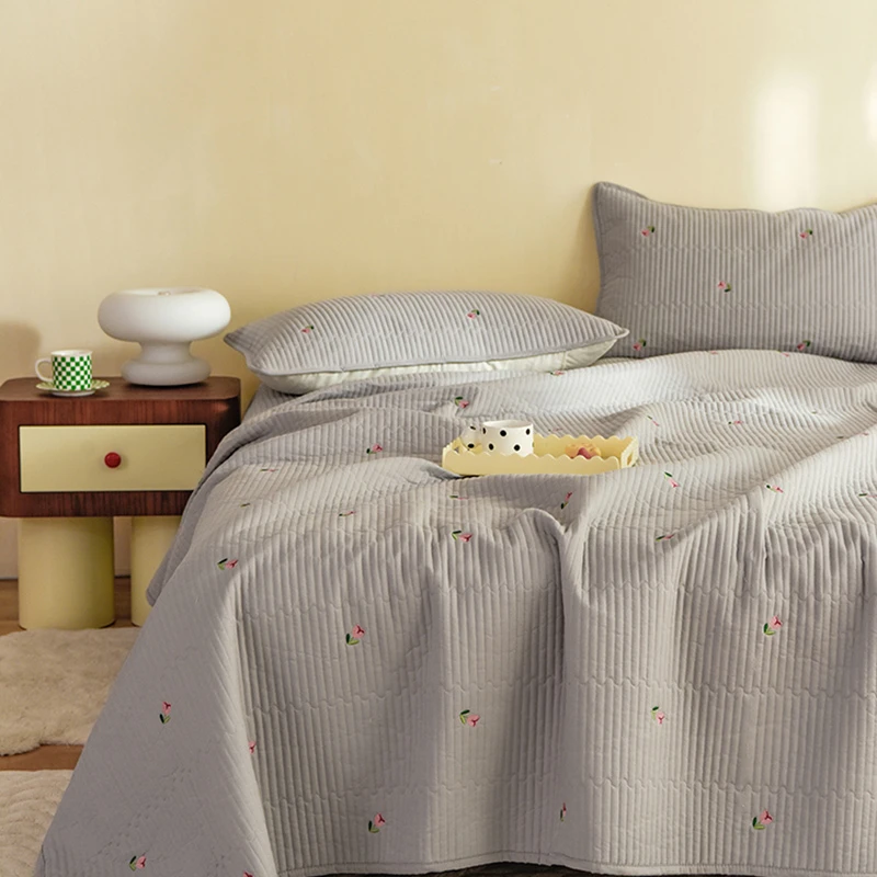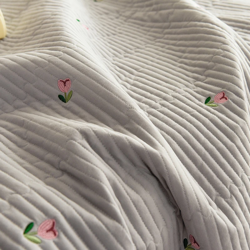 Этот серый покрывало привносит непринужденный оттенок сдержанной роскоши в вашу спальню с этими милыми вышитыми цветами. Изготовлено из премиального хлопка и микрофибры.